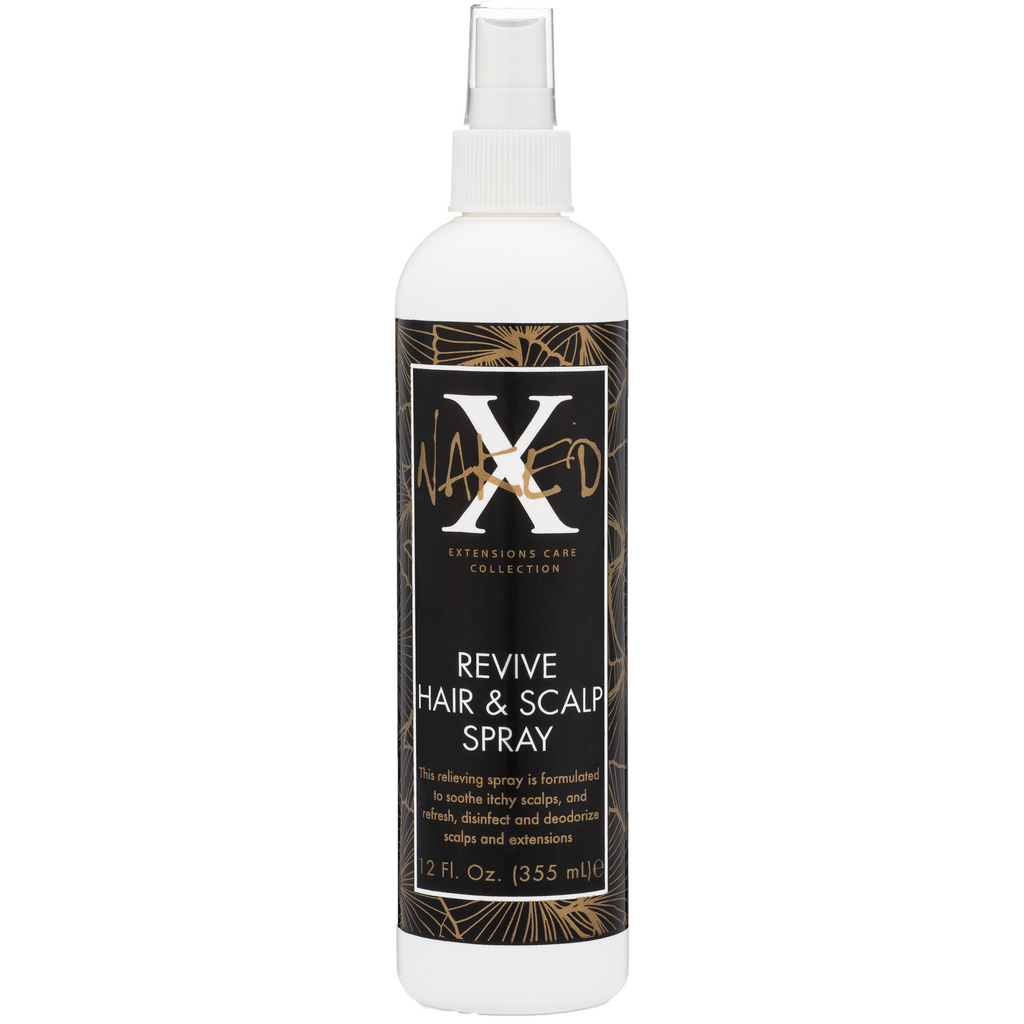 Revive Hair & Scalp Spray is formulated to refresh, disinfect and deodorize scalps and extensions. Its disinfecting properties help combat 99% of bacteria that can be present on extensions before installation. The formula also deodorizes unwanted smells that may be carried on artificial or natural hair.